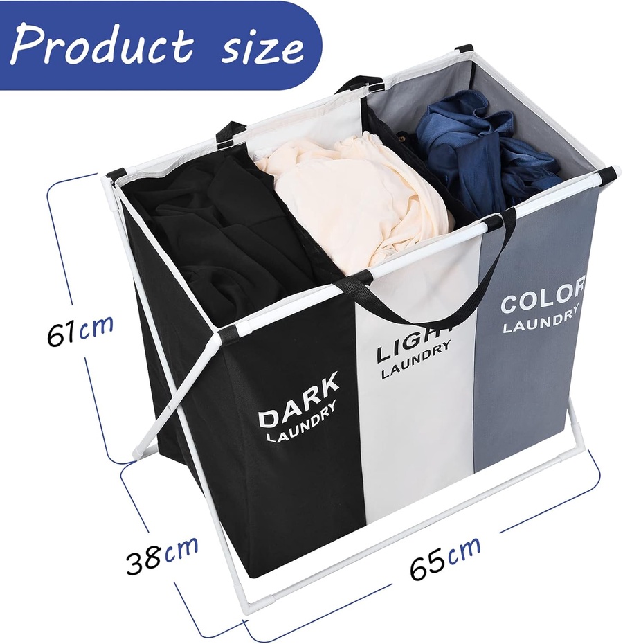 3 أقسام بسعة كبيرة للغسيل والعمل الفعال: نحن نشجع على فرز الغسيل قبل الغسيل. سبت الغسيل هو مساعد ذكي وعالي الجودة لجعل الغسيل أسهل وأسرع.