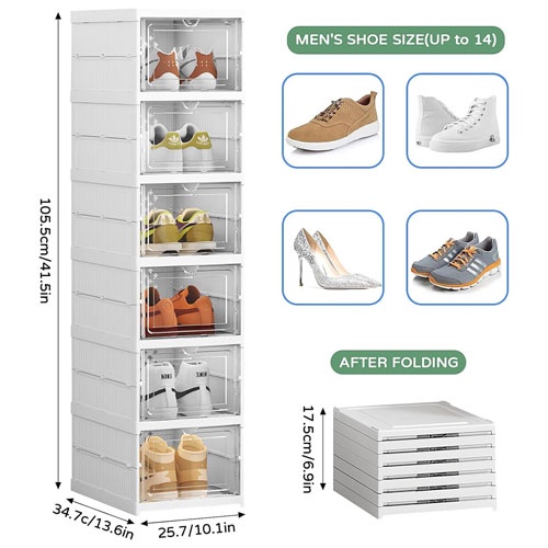 استمتع بحل تخزين ذكي وعملي مع منظم الأحذية القابل للطي بـ6 طبقات، المصمم ليجمع بين الأناقة والوظيفة في آنٍ واحد. بفضل تصميمه المدمج وأبوابه الشفافة، يمكنك الحفاظ على أحذيتك نظيفة ومرتبة مع سهولة الوصول إليها في أي وقت. كما يوفّر لك مساحة إضافية دون الحاجة لأي تركيب معقّد، ليكون الخيار المثالي لكل من يبحث عن تنظيم فعّال ولمسة عصرية في منزله.
