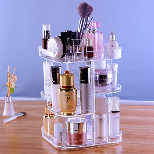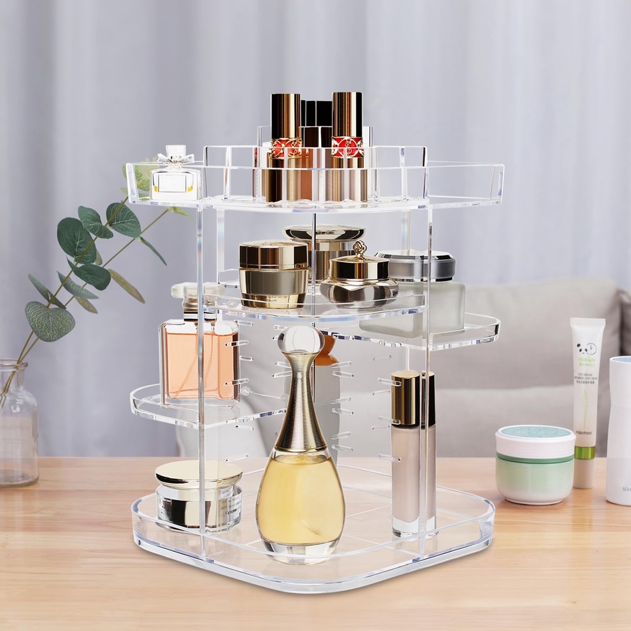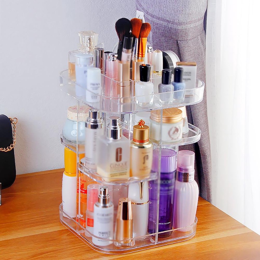 منظم مكياج دوار بزاوية 360 درجة من الاكريليك حامل لعلبة مستحضرات التجميل والعناية بالبشرة بنمط شفاف