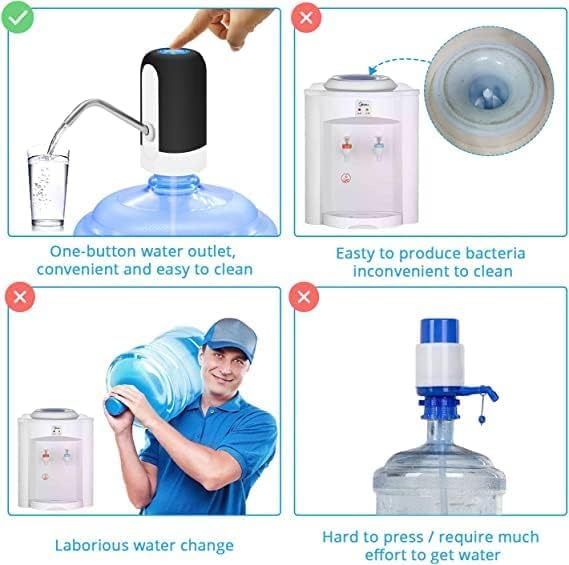 موزع مضخة المياه مع أنبوب من الفولاذ المقاوم للصدأ، مفتاح كهربائي قابل لإعادة الشحن لزر الشرب، سهل الحمل، للمنزل أو الهواء الطلق