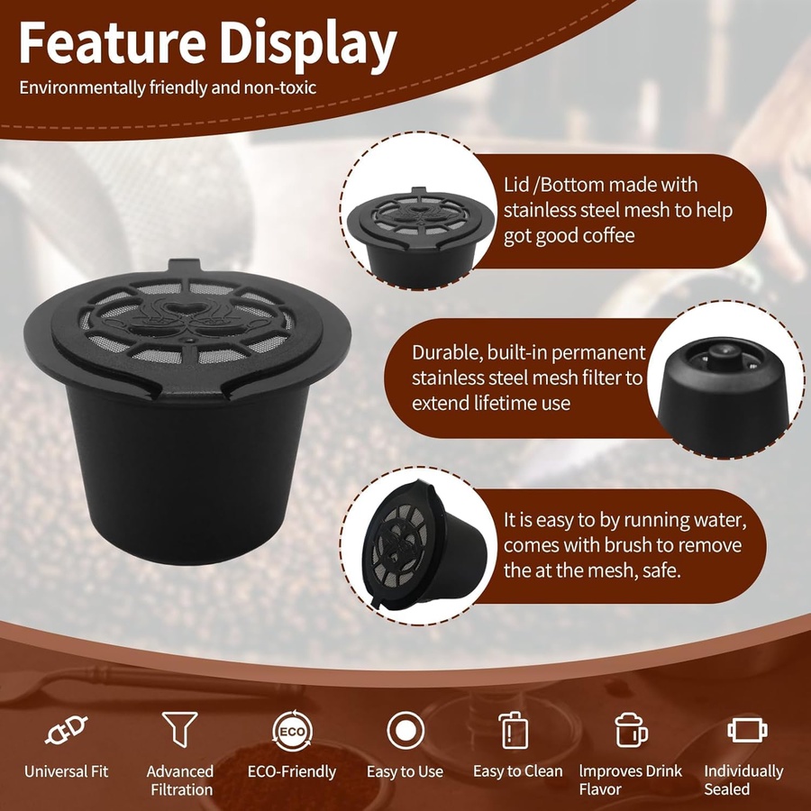 مجموعة كبسولات قهوة قابلة لإعادة الملء وإعادة الاستخدام لماكينة نسبريسو ☕🖤