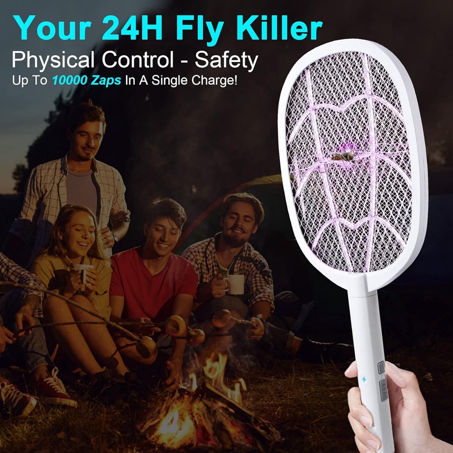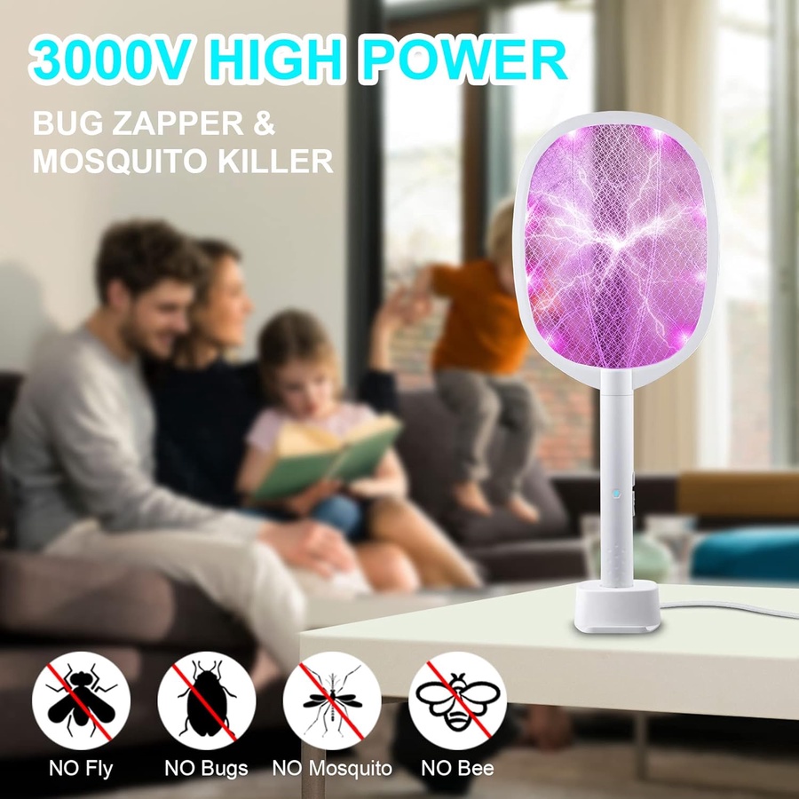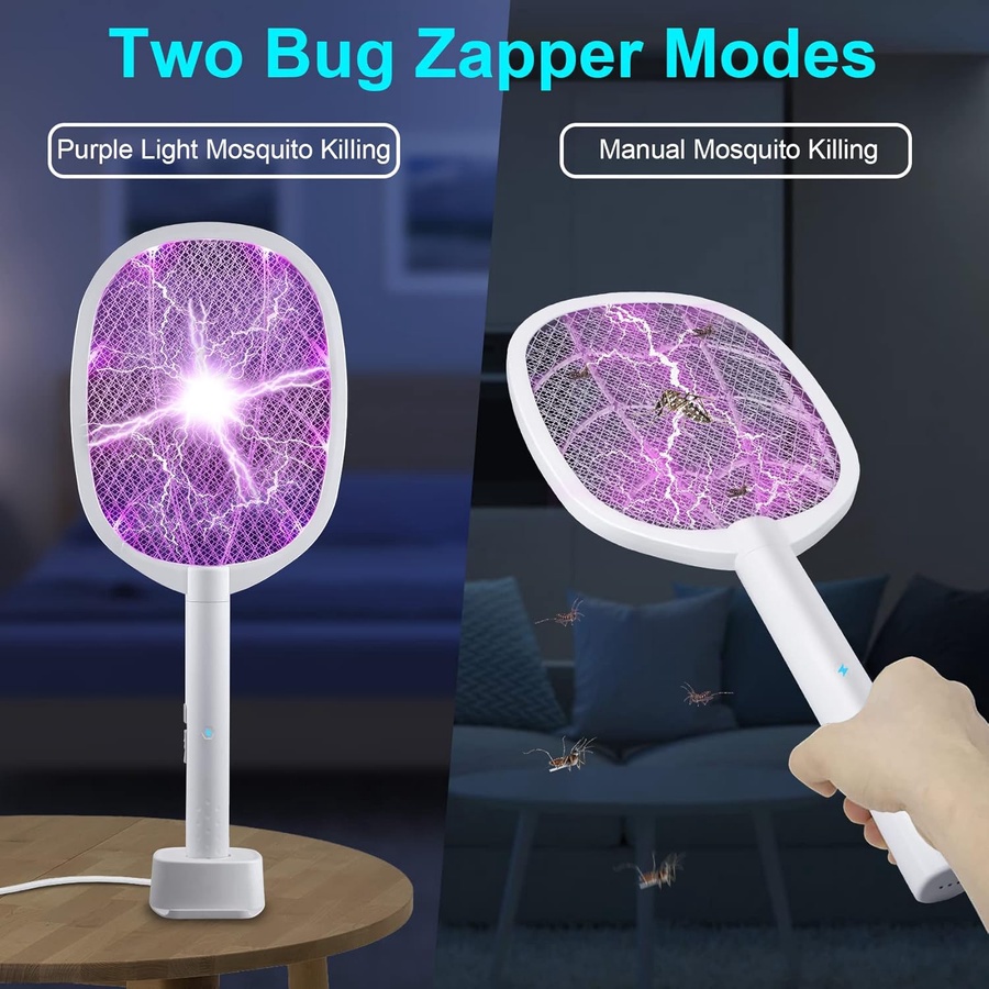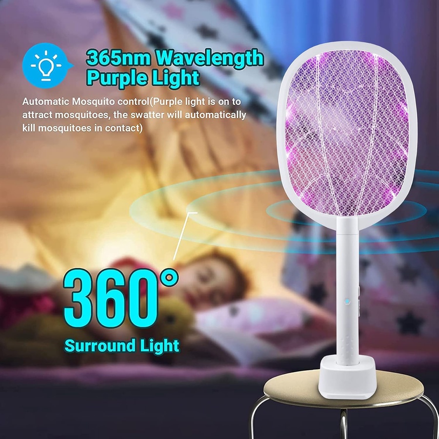 مضرب ذباب وحشرات 2 في 1: مصباح بعوض مدمج، فقط ضعه على القاعدة وشغله، سوف يجذب البعوض نحو ويقتله وفقًا لعادات البعوض، استخدم المصابيح الخرزية ذات الضوء الأرجواني الفاتح والتي يمكنها إطلاق ضوء بطول موجي 395 ملم مناسب لجذب البعوض، مع جزء داخلي بتصميم ماسي ينقل الضوء بقوة، يمكن أن يقضي على البعوض بفعالية
