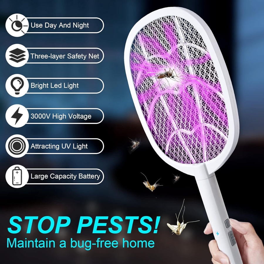 يقتل الحشرات والبعوض على الفور: سوف تتخلص من مشاكل الحشرات على الفور باستخدام صاعق الحشرات الكهربائي القوي عالي الجهد. يسهل تنظيف مضرب صاعق البعوض بعد استخدامه. لا يمتص جسم البعوض بالداخل.