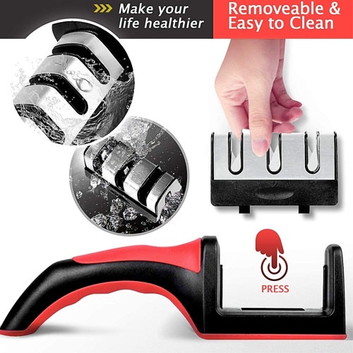 احصل على أداة سن سكاكين سريعة بتقنية فولاذ التنجستن، التي توفر لك شحذًا مزدوج الجوانب يضمن سرعة ودقة لا مثيل لها! ✨ مع مقبض مانع للانزلاق، ستشعر بالثبات والأمان أثناء الاستخدام، مما يجعلها مثالية لجميع أنواع السكاكين، بما في ذلك سكاكين الستانلس ستيل وسكاكين الفاكهة 🍎.